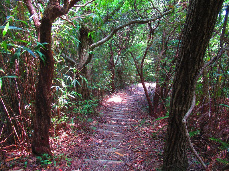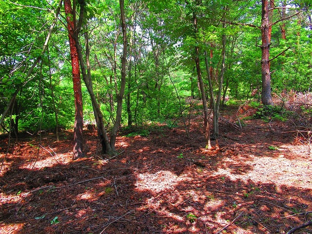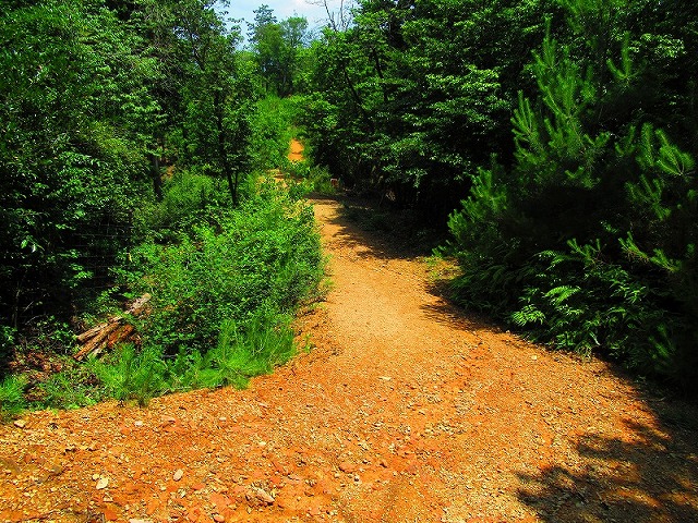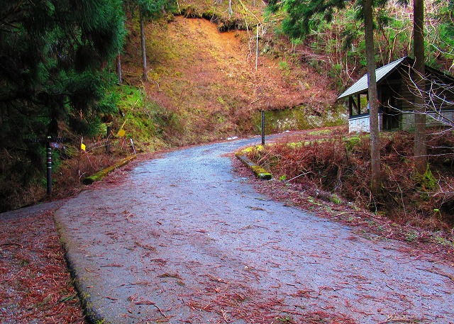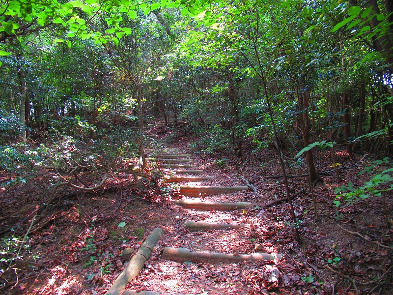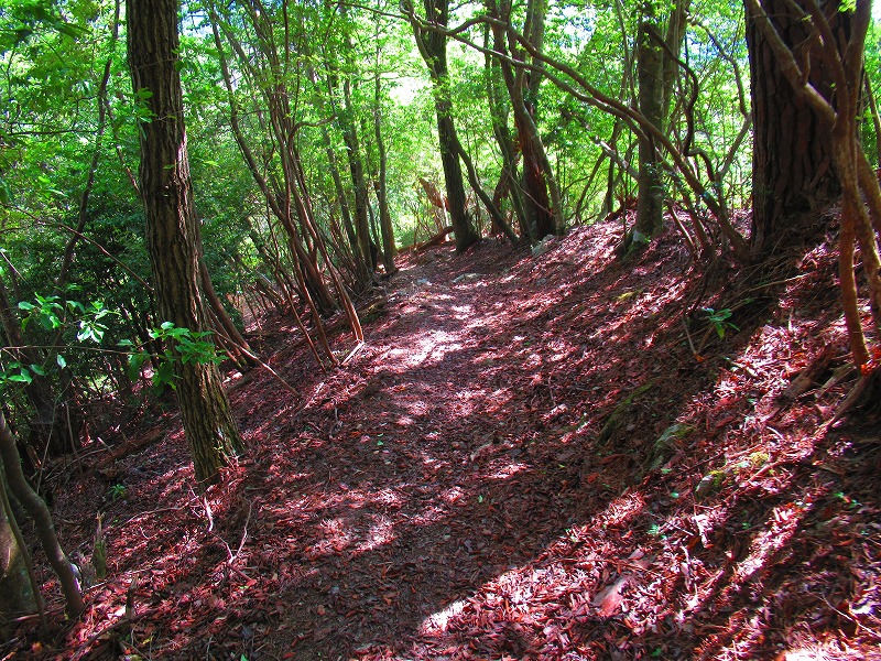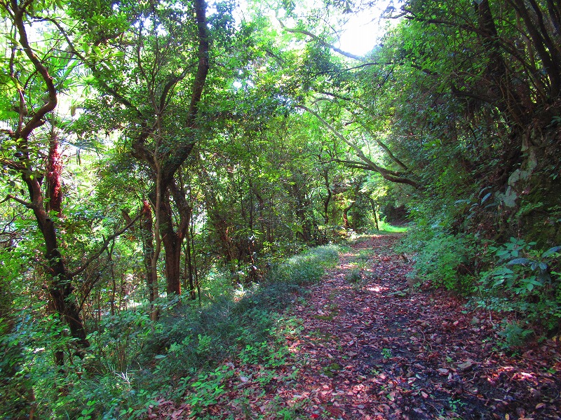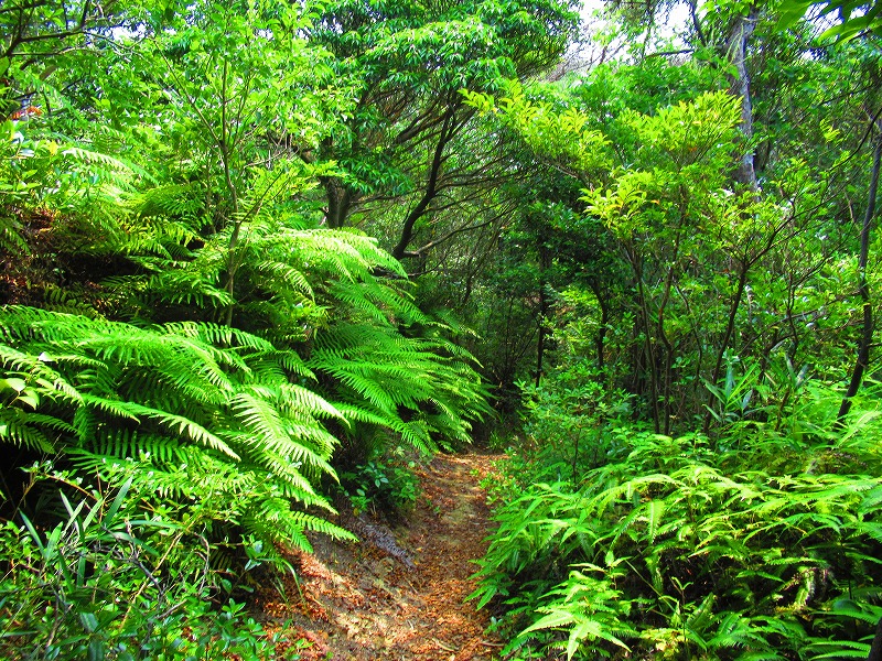 森に入りました。やれやれ一安心です。これで危険な道は無くなり、あとは普通の山道を降りるだけです。