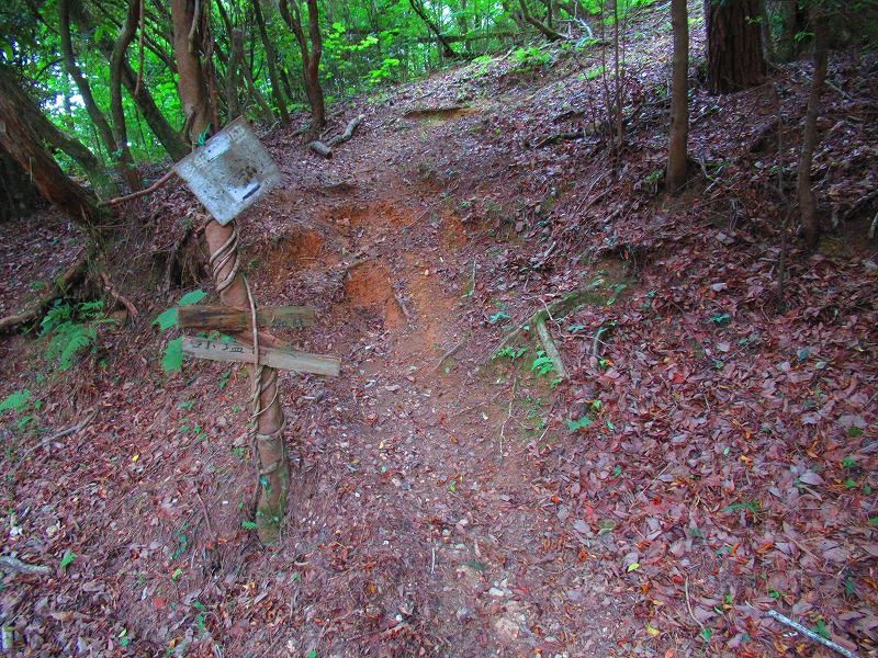 標識が 転がっているので 多分この道で合っているのでしょう。山頂まで約2時間と