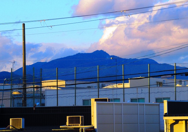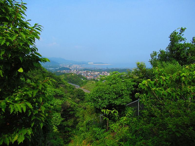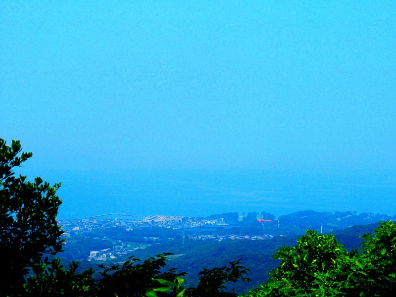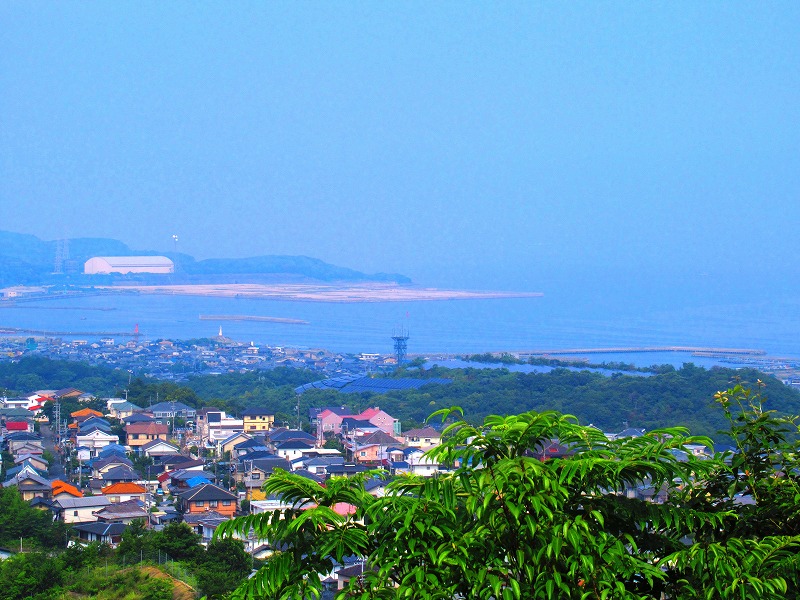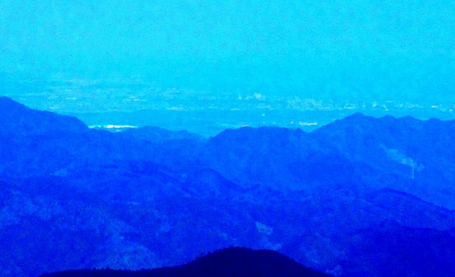 見晴らし台から 下を見下ろすと 町の向こうに山並みが見えて その向こうに何か見えますが