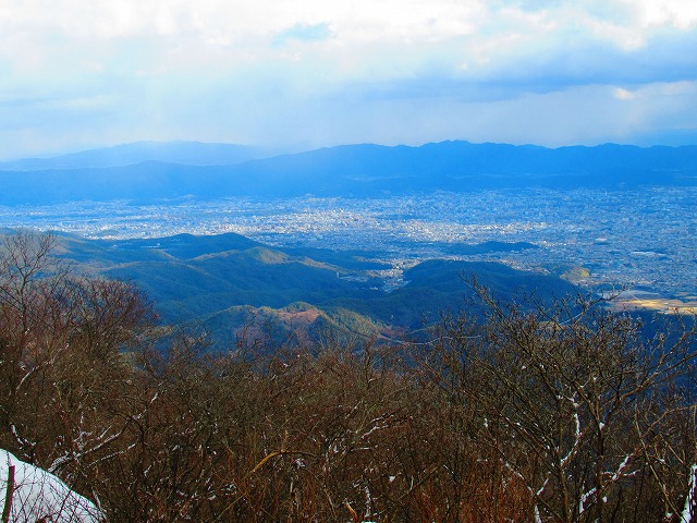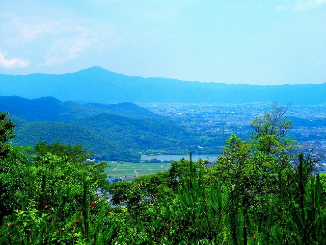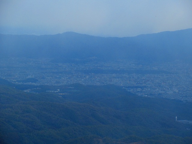 麓の街も見えています。多分左の方に琵琶湖も見えているはずです。かなり霞んできました。