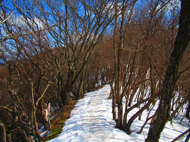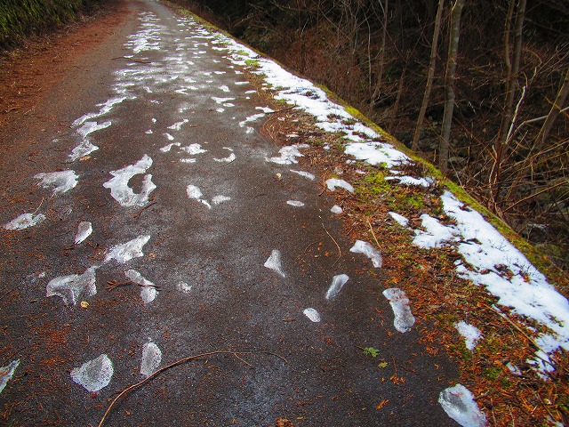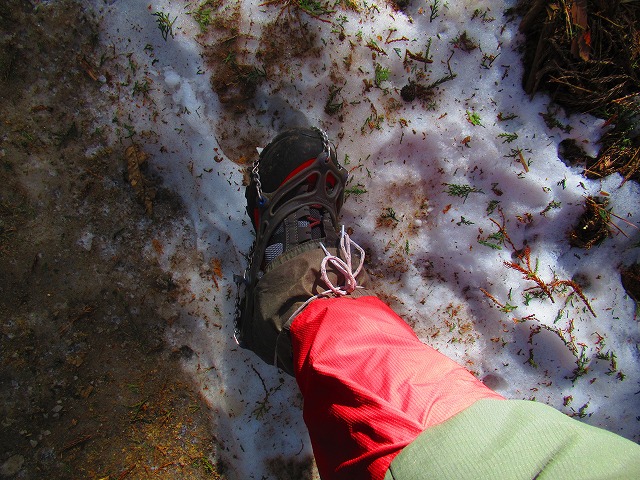 見覚えのある道をどんどん降ります。冬はこの辺りはアイスバーンでしたから チェーンスパイクで