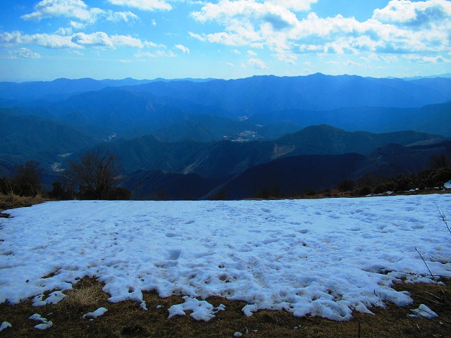やれやれ ようやく近江展望台に到着です。振り返ると歩いて来た尾根道がはるばると続いています。