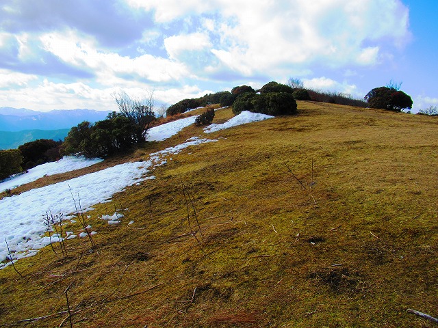 荒涼とした尾根を進みます。踏み跡はそんなに明瞭ではないのですが 尾根から外れなければ